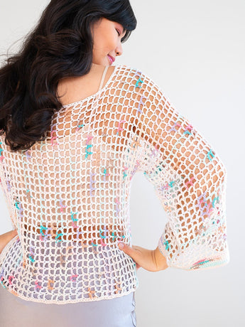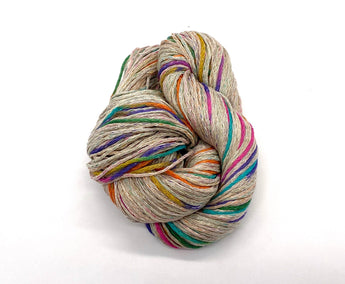 Pops of color in the yarn create a modern look with interesting visual depth. A lovely yarn for cardigans, resorty pullovers, tank, tees, and summery scarves or wraps. Care: Hand wash cold, lay flat to dry.