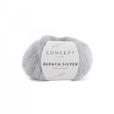 Katia Alpaca Silver or Gold - A beautiful fluffy yarn made of delicate alpaca wool. The yarn has a halo and contains a subtle glitter, giving your projects an extra glamorous look. Alpaca Silver or Alpaca Gold are perfect for knitting scarves, wraps and shawls, but are also very suitable for cardigan and sweaters.