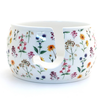 Measuring approximately 6.25" wide and 3.5" high, each bowl includes a smooth J-shaped yarn guide to keep your yarn feeding evenly while you work—helping prevent tangles and snags. Perfect for holding your yarn and keeping your project neatly contained, it’s as practical as it is beautiful.