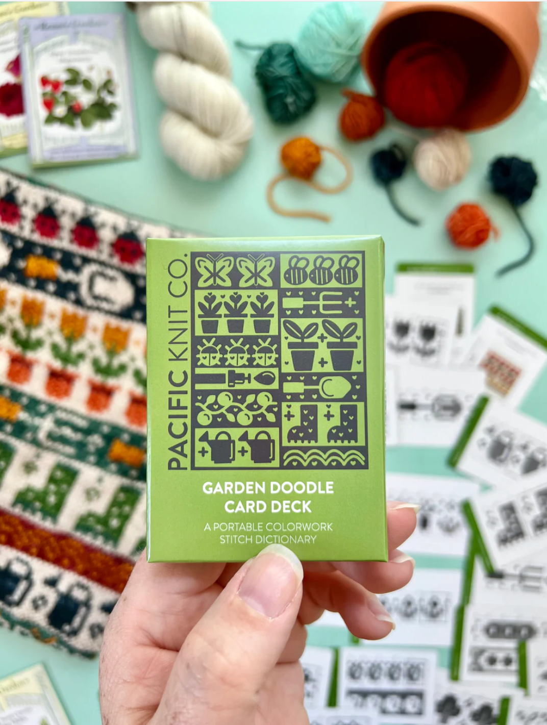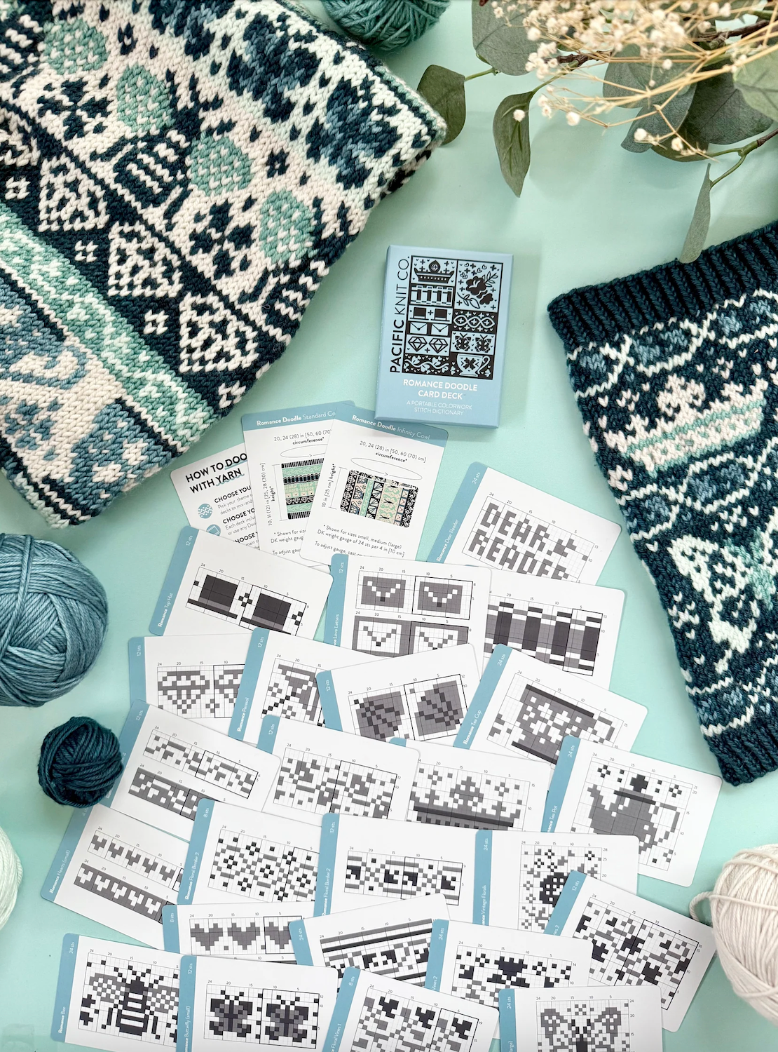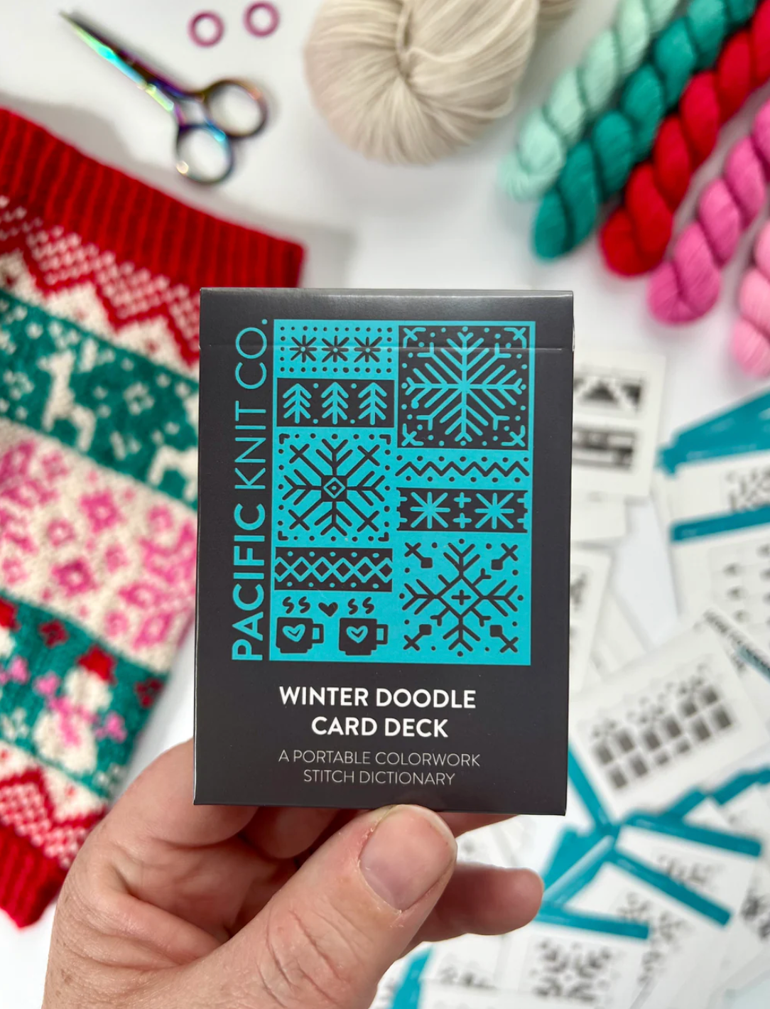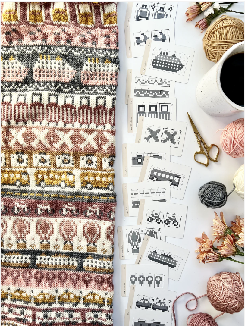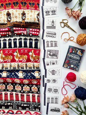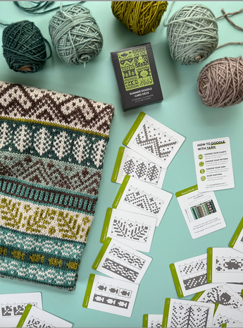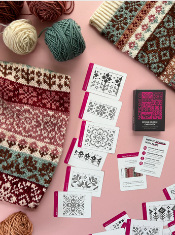THE DOODLE CARD DECK is your favorite new portable colorwork stitch dictionary! Use these flexible mix-and-match chart cards to visually re-arrange and design the perfect colorwork pattern from start to finish.
