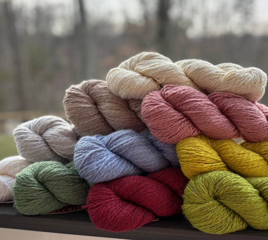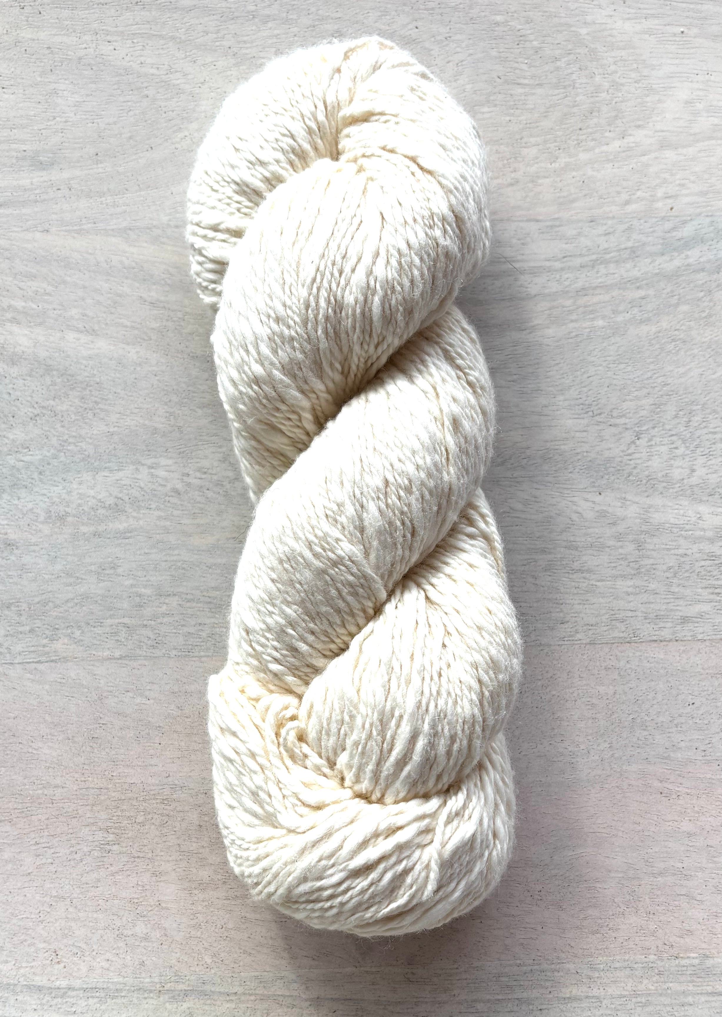 Mirasol Winqu is a high end organic Tanguis Peruvian cotton that is blended with the finest silk. Winqu, which translates into "wave" in the indigenous Peruvian Mapuche dialect, is a two-ply yarn that is lightly spun giving it a bit of a thick-and-thin wavy feel and creating visually stunning and interesting garments & accessories.