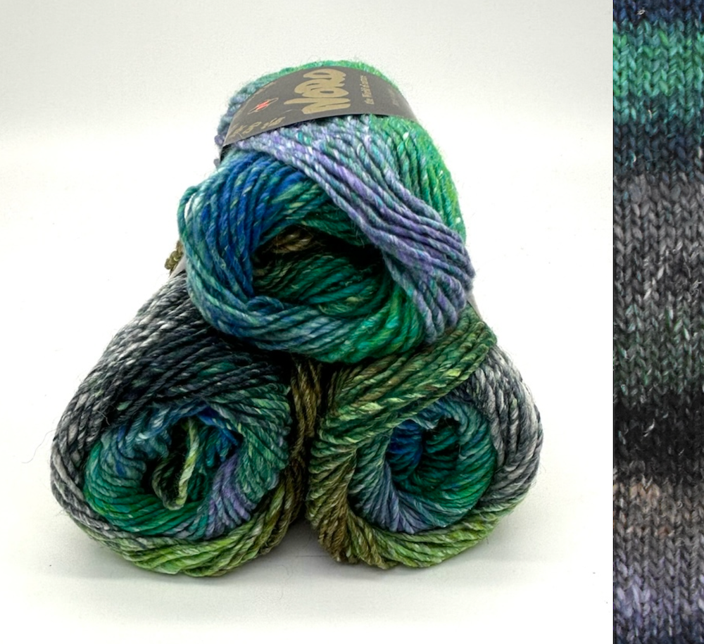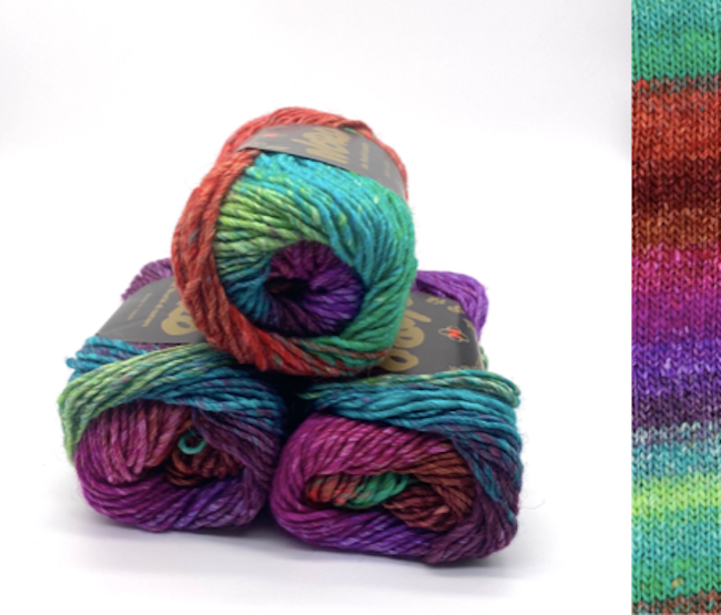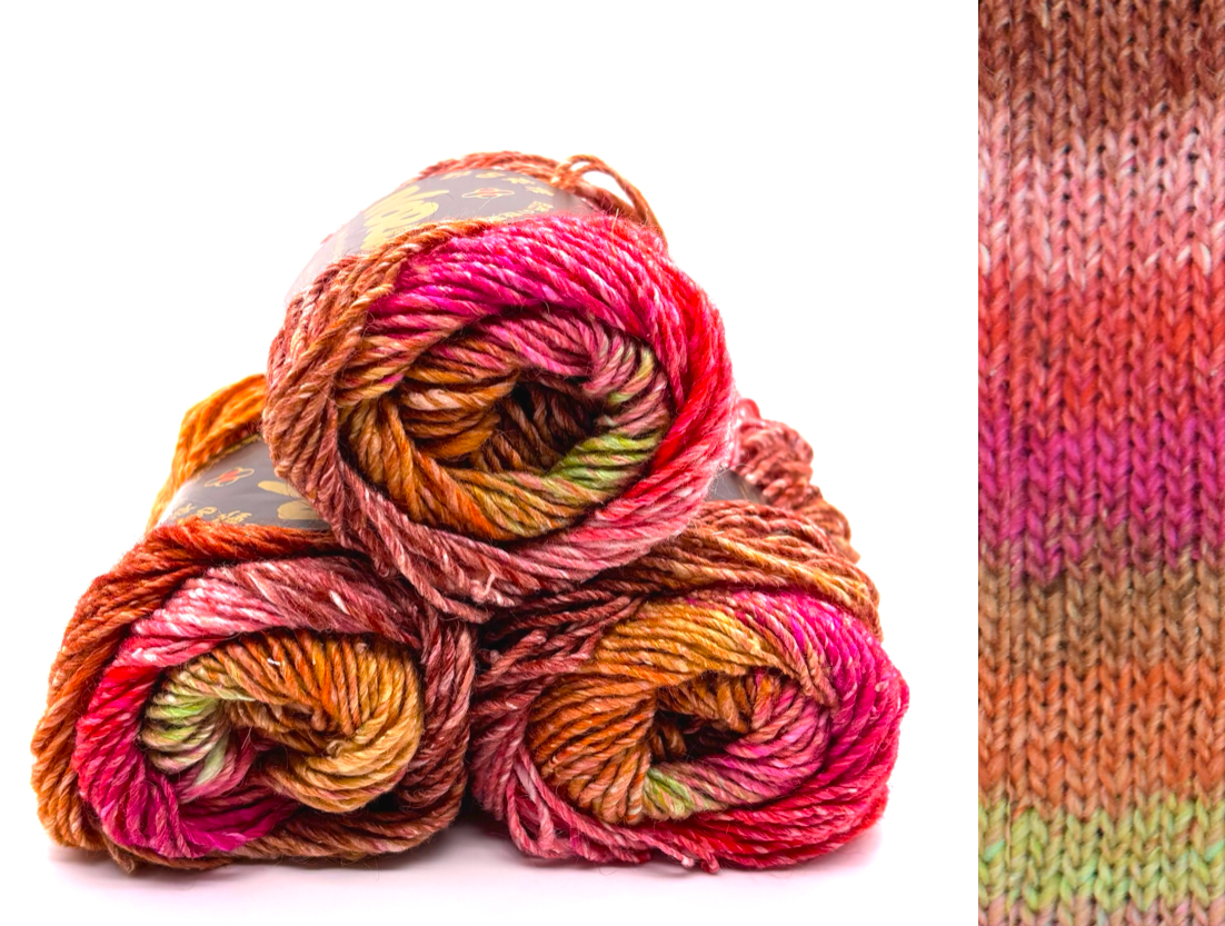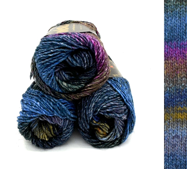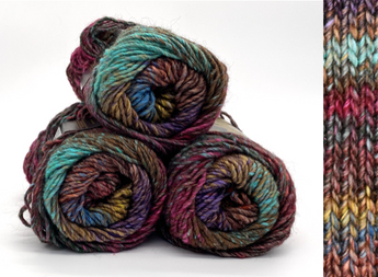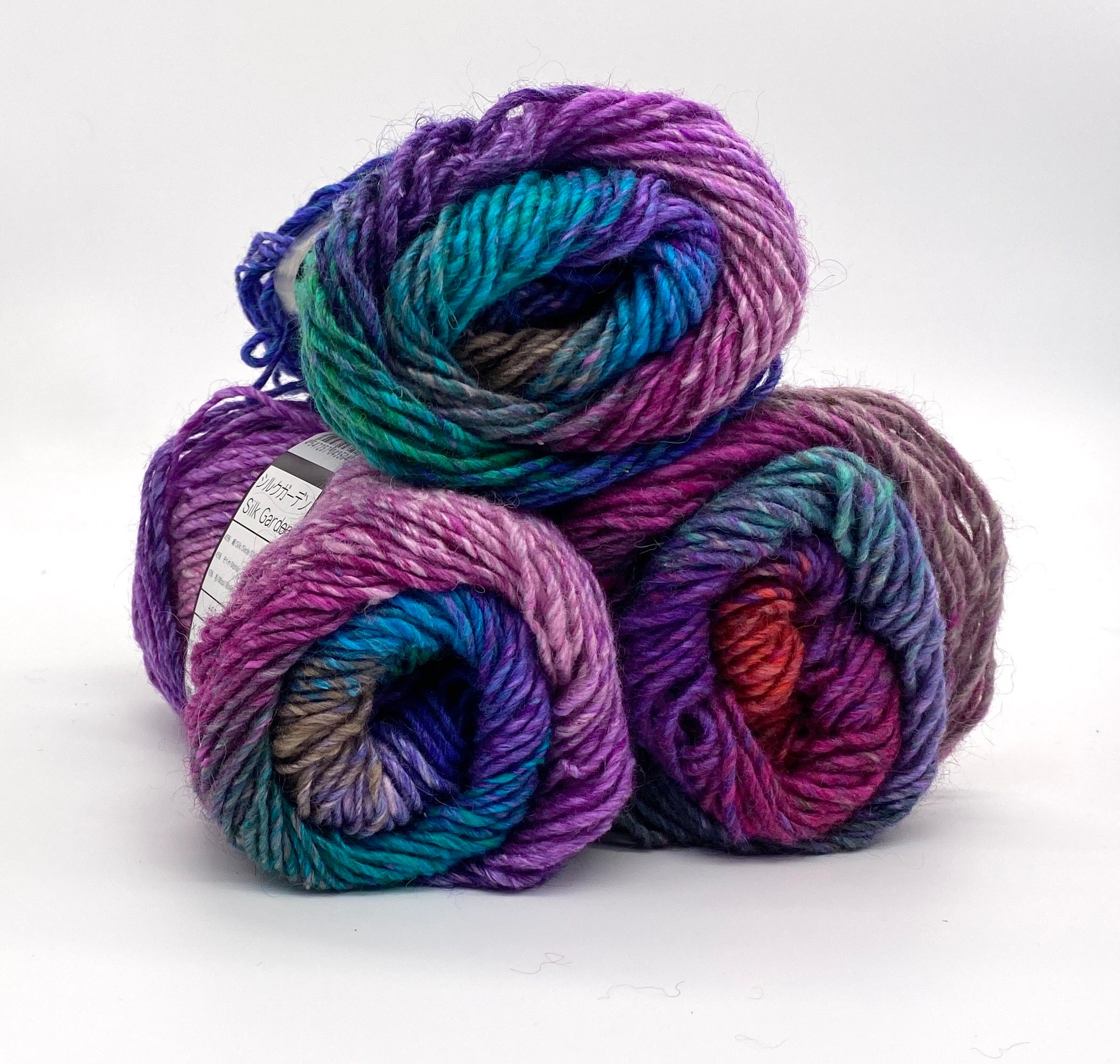 The luscious texture of silk and mohair shines in Noro Silk Garden. This exquisite worsted weight yarn is hand-dyed in Noro's signature glorious self-striping color combinations, and knits up into a superbly draped fabric with warmth to spare. Luxurious and top quality, projects knit in Silk Garden are one of a kind.