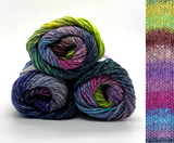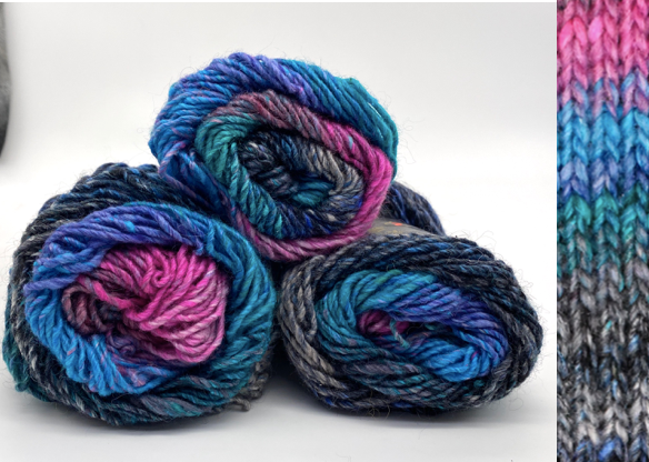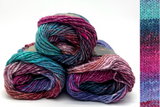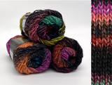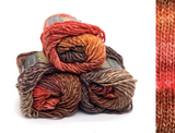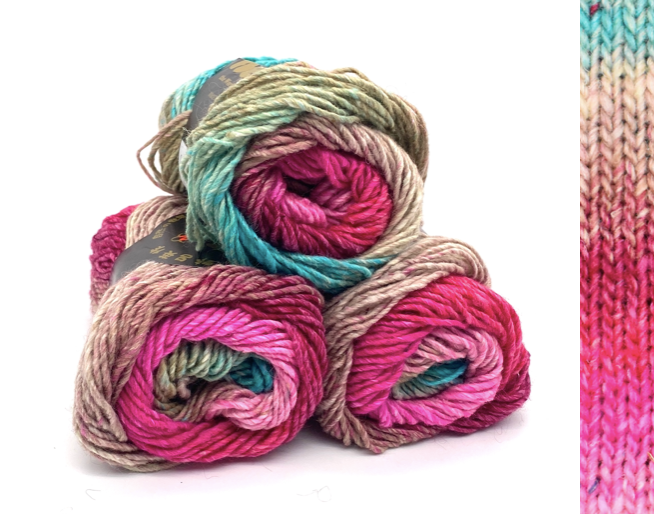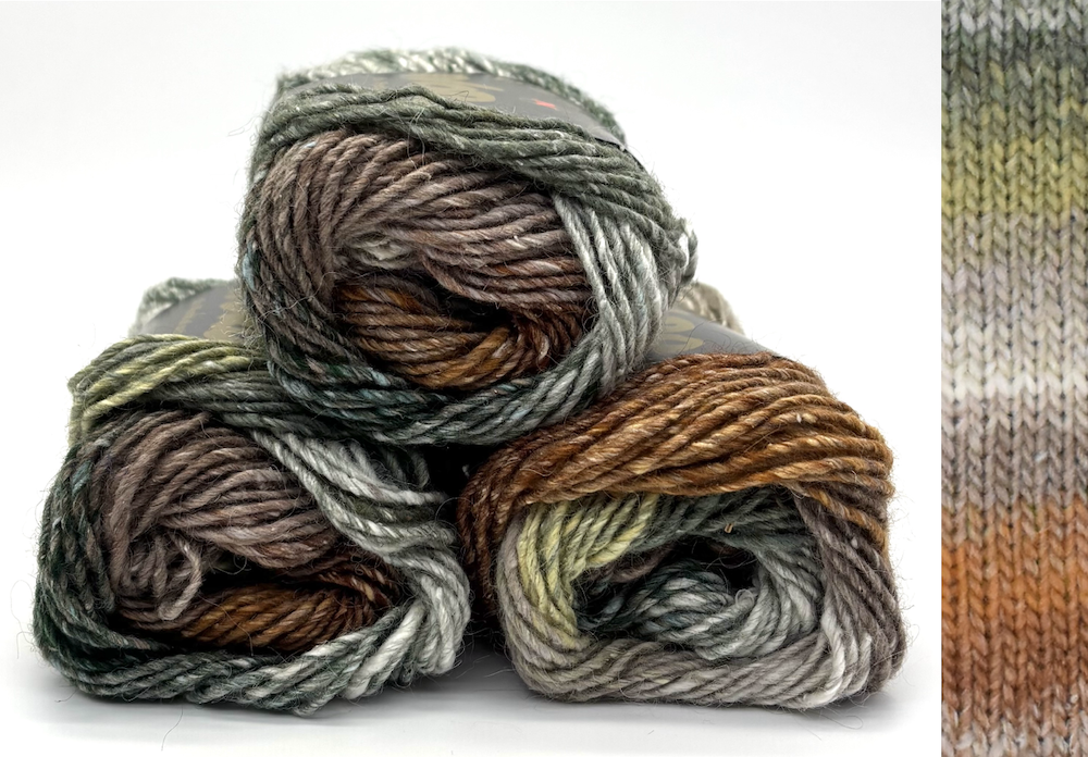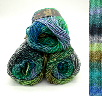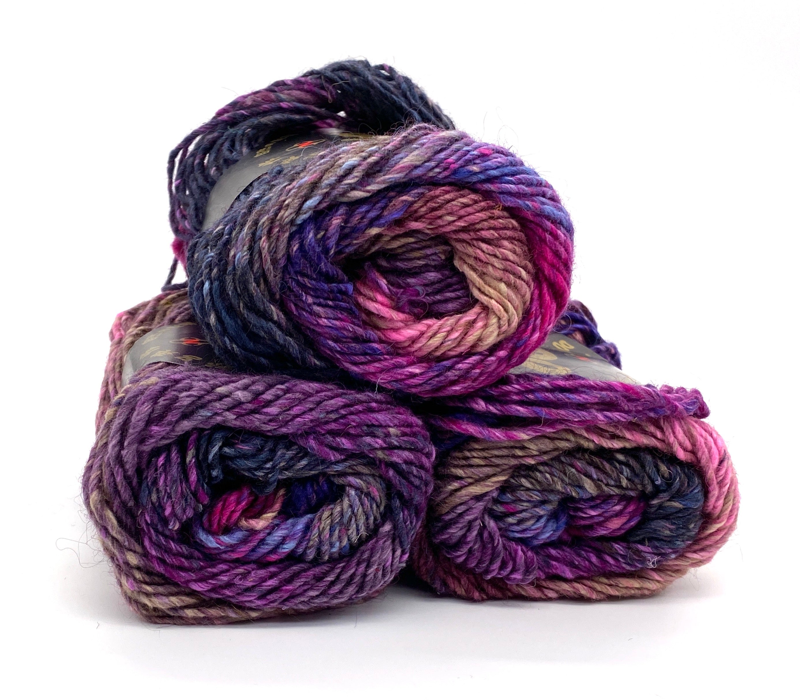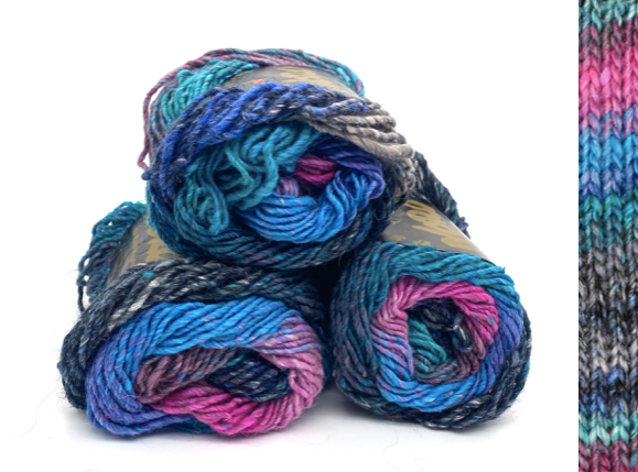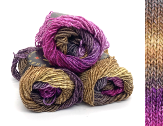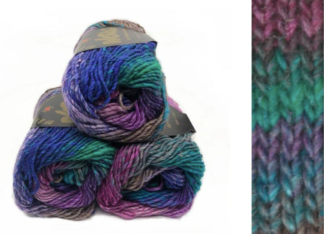 The luscious texture of silk and mohair shines in Noro Silk Garden. This exquisite worsted weight yarn is hand-dyed in Noro's signature glorious self-striping color combinations, and knits up into a superbly draped fabric with warmth to spare. Luxurious and top quality, projects knit in Silk Garden are one of a kind.