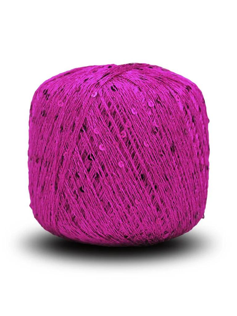 A beautiful sequin yarn can be used on its own or combined with another yarn.