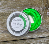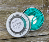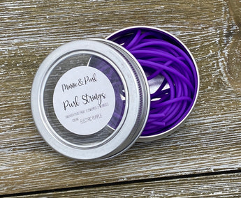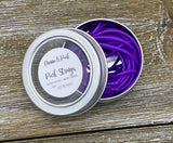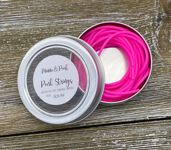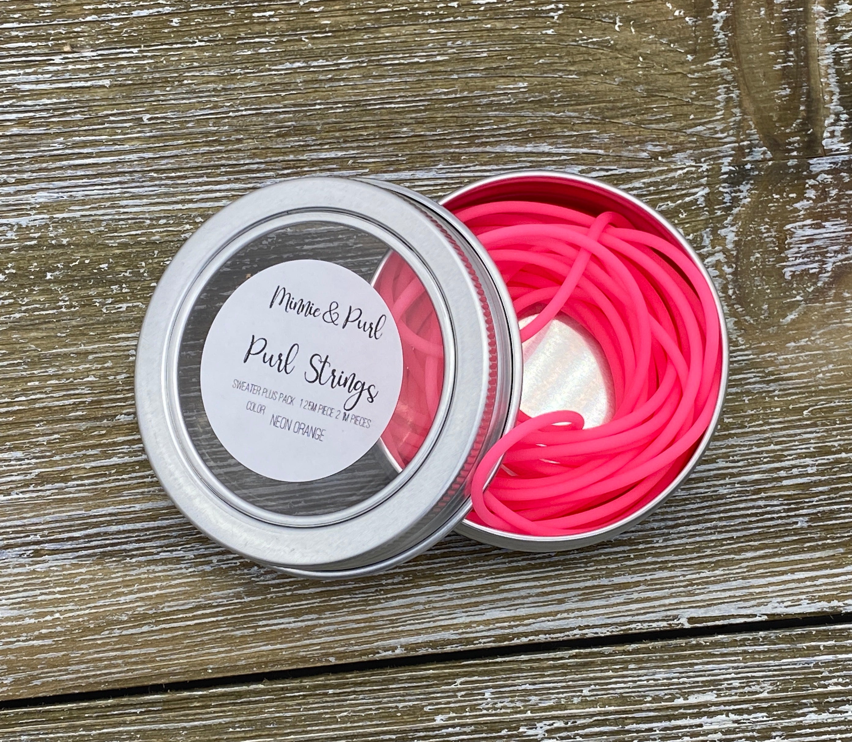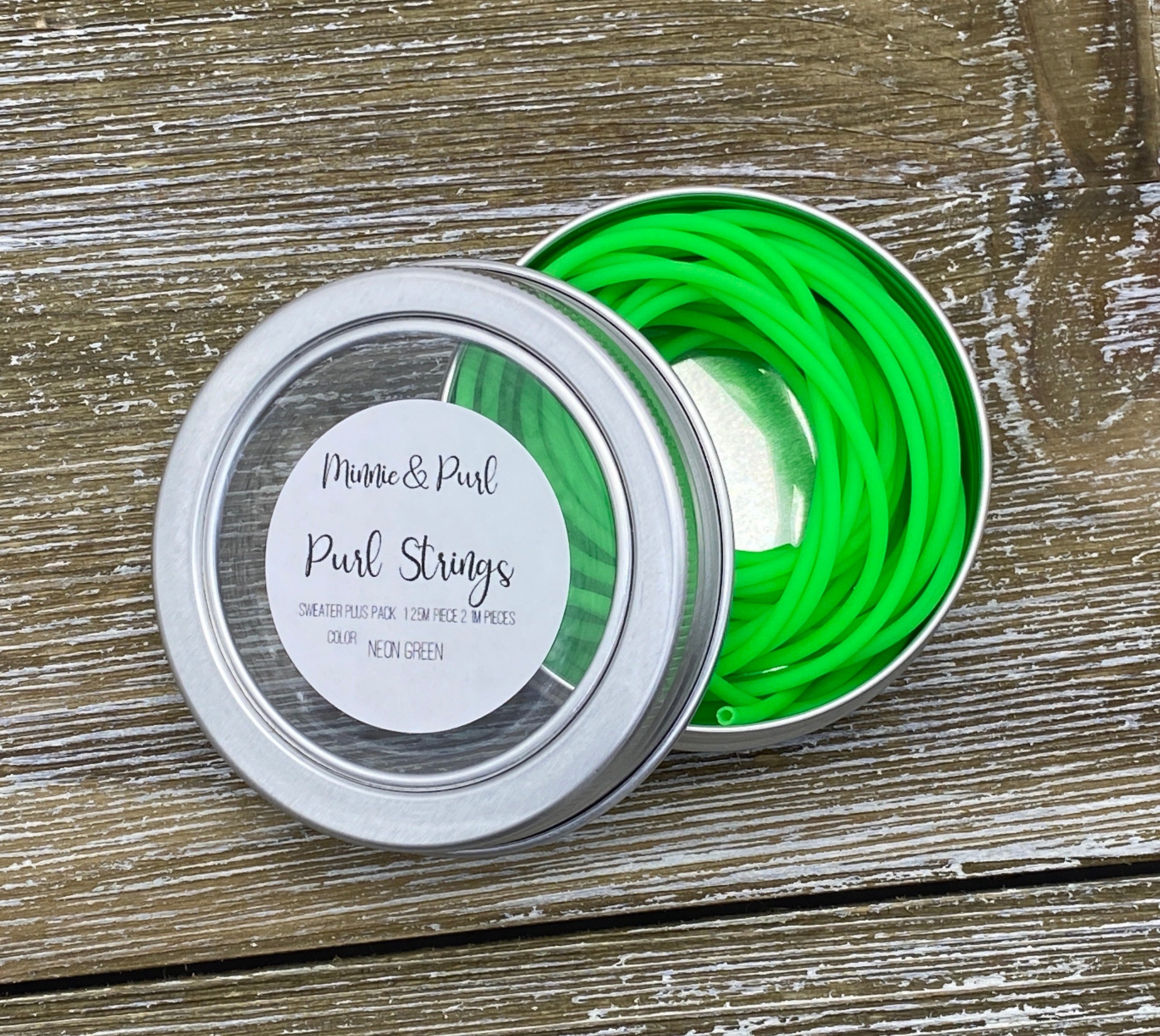 Purl Strings 2mm flexible rubber cords are hollow, so they fit snugly over the tip of most needle sizes. Once attached, your stitches will slide with ease from your needle onto the Purl String and back again. Perfect for trying on your knitting without the need for waste yarn and darning needles! Each tin includes 3 cords (two in 1 meter length, and one in 2.5 meters length) securely stored in a handy screw-top tin.