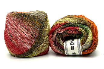 Named after Japanese for "summer is in the air," Natsumeki yarn combines the breathability of cotton, the luxurious sheen of silk, and the durability of polyamide to create a truly enchanting knitting experience. Each generous 150-gram skein of Natsumeki yarn contains 525 yards of creative potential, ready to be transformed into breezy tops, lightweight scarves, and elegant accessories. Whether youre knitting lace patterns or textured stitches, Natsumeki yarns vibrant colors and subtle variations ensure each project is a celebration of summer style.