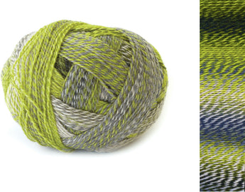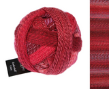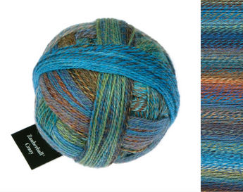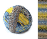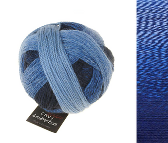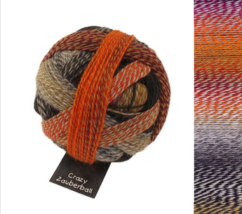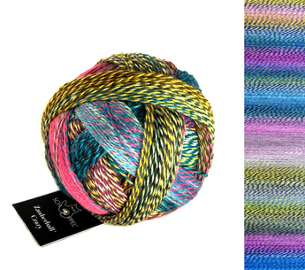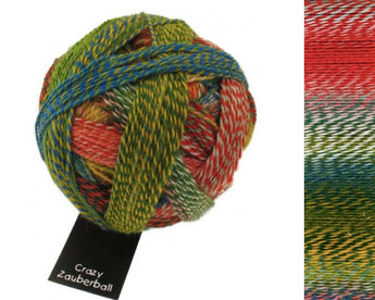 Zauberball Crazy yarn by Schoppel Wolle is a unique fingering weight superwash wool with a touch of nylon. Zauberball Crazy has two strands of the main ply dyed individually and then twisted together for a crazy combination! The result is a self-striping multi-colored pattern, with a bold variegated design