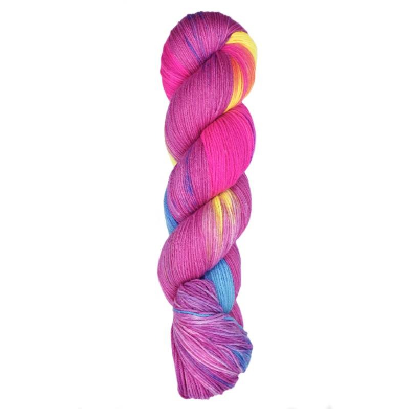 Araucania Huasco Sock Prism Paints merino yarn is where light and color converge to create a mesmerizing kaleidoscope of hues. This super fine-weight yarn, a variation of our classic Huasco Sock, features a blend of 75% superwash Merino Wool and 25% Polyamide, ensuring both softness and durability. Each 100 gram skein offers 433 yards of artisanally hand-dyed fiber, where every stitch unfolds like a prism, revealing a rainbow of colors. Perfect for shawls, socks, and cardigans, Araucania Huasco Sock Prism Paints brings a new dimension of beauty to your knitting projects. Immerse yourself in the magic of color as you knit and watch your creations come to life in vibrant splendor.