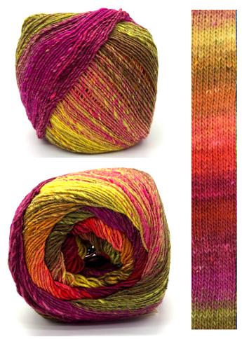 Noro yarns are renowned for their self-striping colors and high-quality fibers, and Saiun is just as amazing. The unique striping effect is achieved through a meticulous process of blending raw materials and spinning them into vibrant, multicolored yarns. This technique ensures that no two projects look exactly alike, giving each piece a distinctive and artistic appearance.